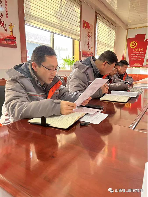 .后,冯成義对此次专题民主生活会进行了总结发言,他指出,大家结合党史学习教育进行的批评与自我批评均直面问题,不遮掩、不回避,达到了出出汗、红红脸、提提醒的目的,取得了相互帮助、增进团结、共同提高的良好效果。接下来大家要把学习整改的内容转换成工作的动力,融入到日常工作中。他要求,在今后的工作中,要以此次民主生活会为契机,鞭策自己,严格要求自己,自警、自觉、自省、自律,转变思想认识,对工作要更加认真负责,理论知识学习和业务知识学习要两不误,两促进,特别要加强对党的路线方针政策及法律法规的学习和掌握,不断提升自身素质和办事能力。他表示,特别感谢全场职工对农牧场产业发展的关心和支持,感谢职工们所做出的付出和贡献!