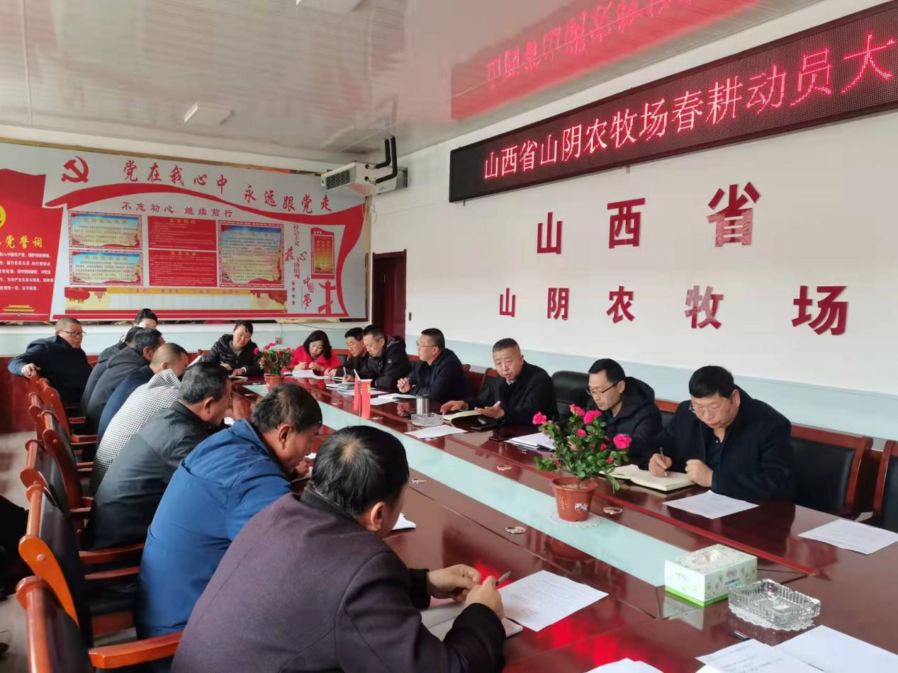 3月22日,山西省山阴农牧场召开春耕动员大会,会议宣布了3月21日党委会议决议《关于场.工作分工情况的通知》以及对2022年春耕备耕、农业生产、后勤保障、纪律监察、各单位工作的开展等方面进行了安排部署。大会由党委书记、场长冯成義主持并讲话,场.、分场场长、各科室、草业公司、现代农业研究院负责人参加了会议。
