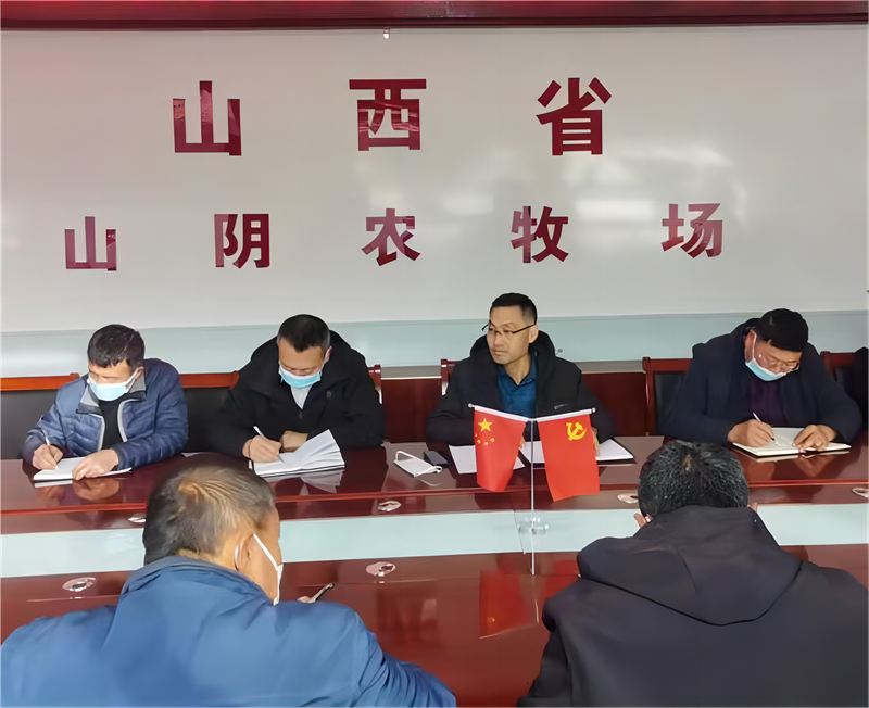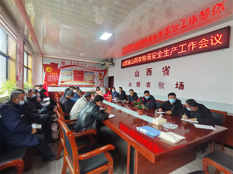 2022年11月25日上午,山西省山阴农牧场召开安全生产工作会议,按照场党委书记、场长冯成義的指示,党委副书记王永卿主持会议并讲话,场.、各分场管理人员、各科室负责人、天牧园公司负责人、设施农业示范园负责人参加会议。