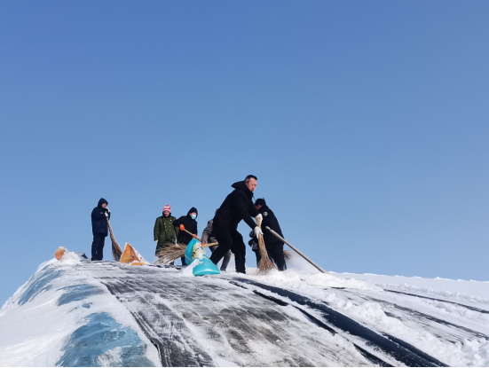 1月14日,场党委副书记王永卿组织工作人员赶赴现代农业科技研究院全力清除积雪,党委委员、副场长张汉斌,党委委员、副场长周文来各自带领一个队,分工合作,协调配合,有序开展除雪行动。大家放弃休息日,不怕苦、不怕累、不怕脏,个个挥舞着除雪工具,干劲十足,迎寒风、战积雪,场面热火朝天。