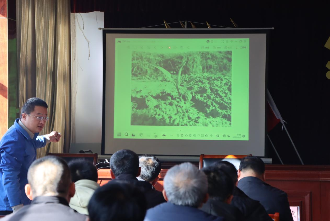 培训中,王宝峰结合我场区域特点和生产实际,围绕玉米增产潜力和高产途径,从品种选择、播种技术、合理密植、施肥技术、病虫害防治等方面进行详细讲解,并与参训人员互动交流,帮助其掌握玉米种植管理相关技术,为今年的玉米高产高效打下坚实基础。
